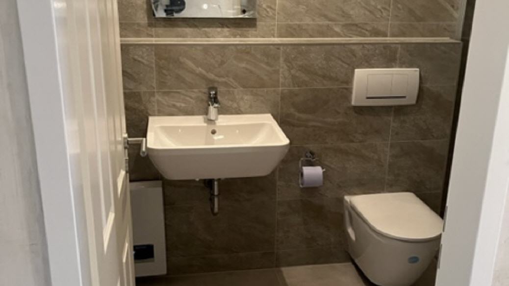 Die Warmwasserversorgung erfolgt durch einen Durchlauferhitzer.