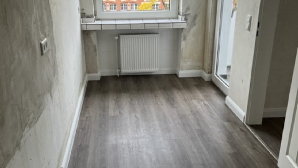 Alle nicht gefliesten Böden haben Klick-Venyl, das hat den Vorteil das man nass wischen kann und geräuschärmer ist.